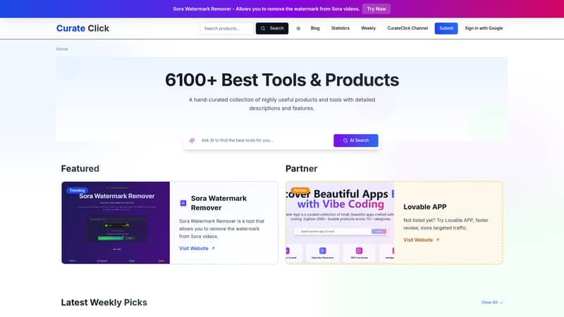The Definitive Hub for AI Innovation — A hand-curated directory designed to help users discover, track, and leverage the world's most cutting-edge AI tools and digital products.