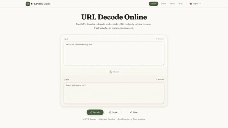 Use our free url decode online tool to instantly convert percent-encoded characters into readable text. Safe, private, and supports multi-layer UTF-8 decoding.