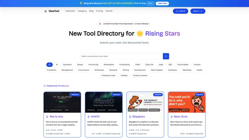 NewTool.site is a comprehensive AI tools directory that helps you find the latest AI software, top-rated apps, and innovative productivity solutions daily.
