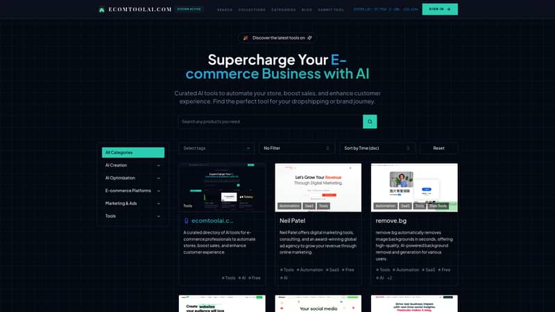 Discover Ecomtool AI, the ultimate curated directory of AI tools designed to automate your e-commerce business, boost global sales, and enhance customer journeys.