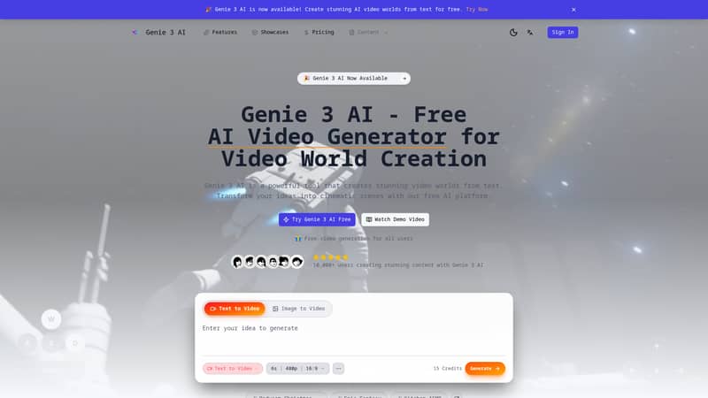Free AI-powered creative tool for generating images and visual content. Transform your ideas into stunning artwork with Genie 3 AI.