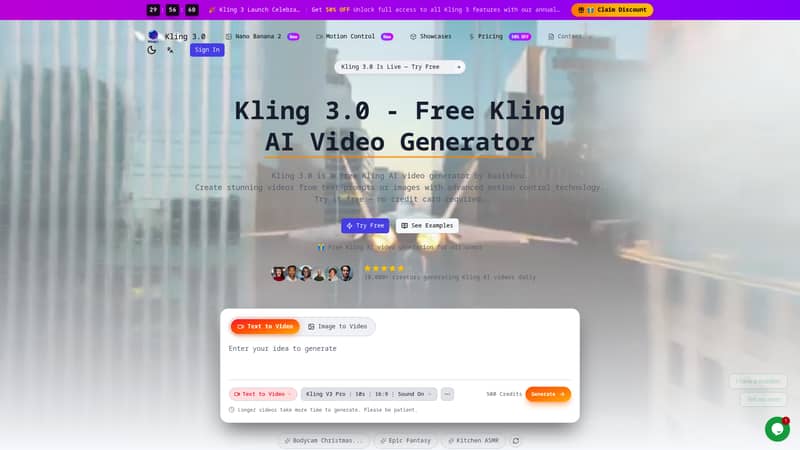 Free online AI video generator powered by Kling 3. Create professional videos from text descriptions with state-of-the-art AI technology.