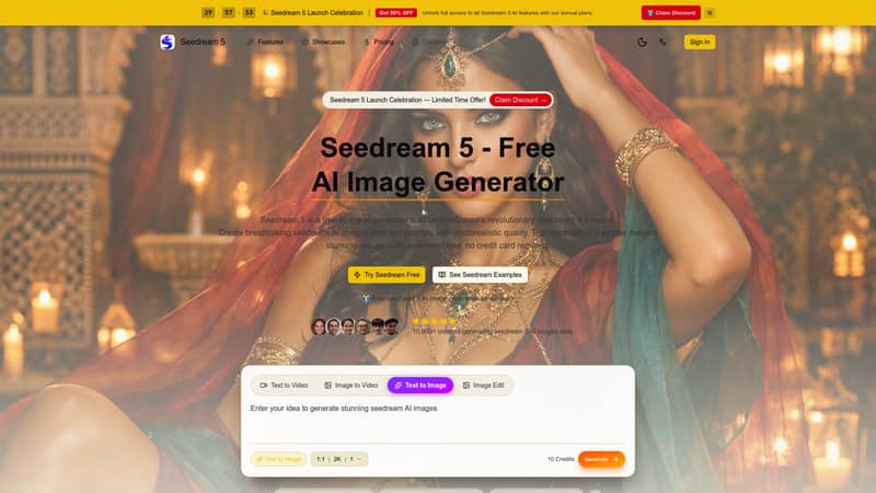 Free AI image generator powered by Seedream 5 model. Create photorealistic images and artwork from text prompts instantly.